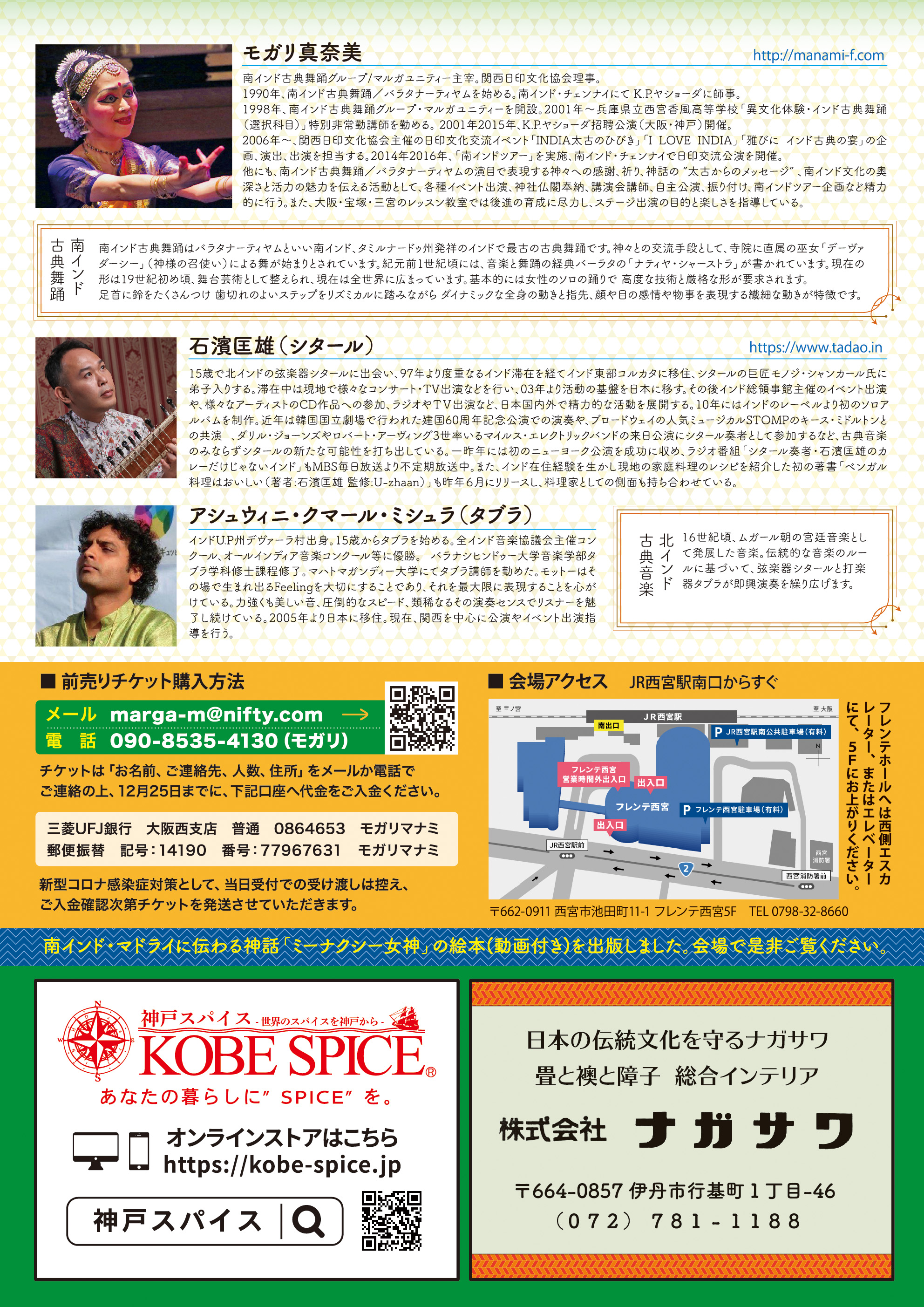 【後援】在大阪・神戸インド総領事館、(公財)兵庫県芸術文化協会、神戸芸術文化会議、