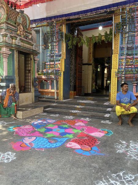 この習慣は南インド・タミルナードゥ州でよくみられますが、他の地域でも祭りの時などに描きランゴリーやマンダーナと呼ばれています。